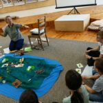 Úvodem jsme se seznámili s různými druhy žab žijících na našem území. Představili jsme si krásně vybarvené exotické žabky včetně jejich mimiker a seznámili se s vývojem žáby od vajíčka k dospělci. Na závěr jsme si uspořádali malý žabí koncert s ručně vyřezanými nástroji.